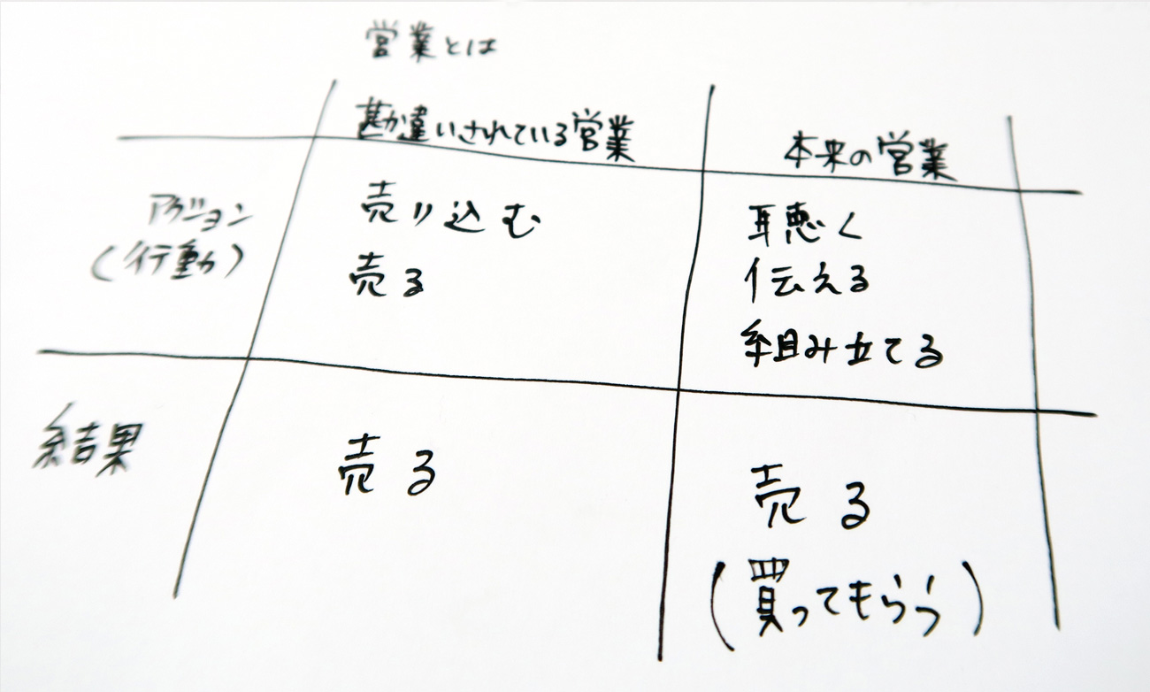 よく勘違いされますが、そもそも「営業」というアクションは存在しません。加えていうと、「売る」というアクションも存在しないのです。