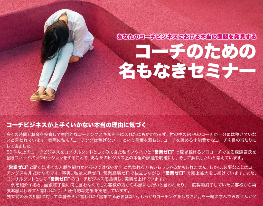 下記のような悩みをお持ちのコーチが対象です。進んでご参加ください。
